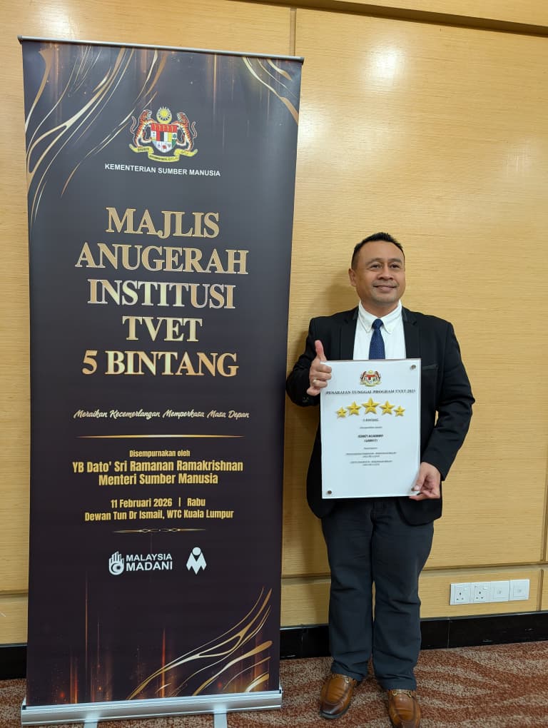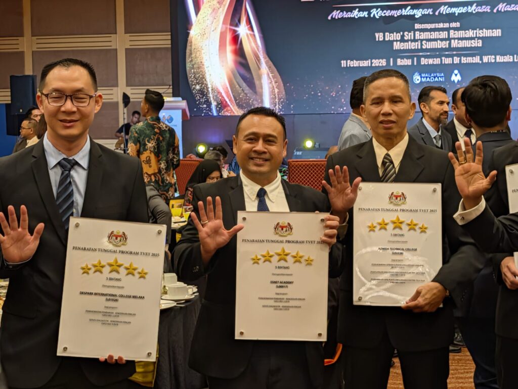 Kuala Lumpur, 11 February 2026 — ESnet Academy is honoured to receive the 5 Stars Award at the Majlis Anugerah Institusi TVET 5 Bintang held at the World Trade Centre (WTC), Kuala Lumpur. The award was presented by YB Dato’ Sri Ramanan Ramakrishnan, Minister of Human Resources.